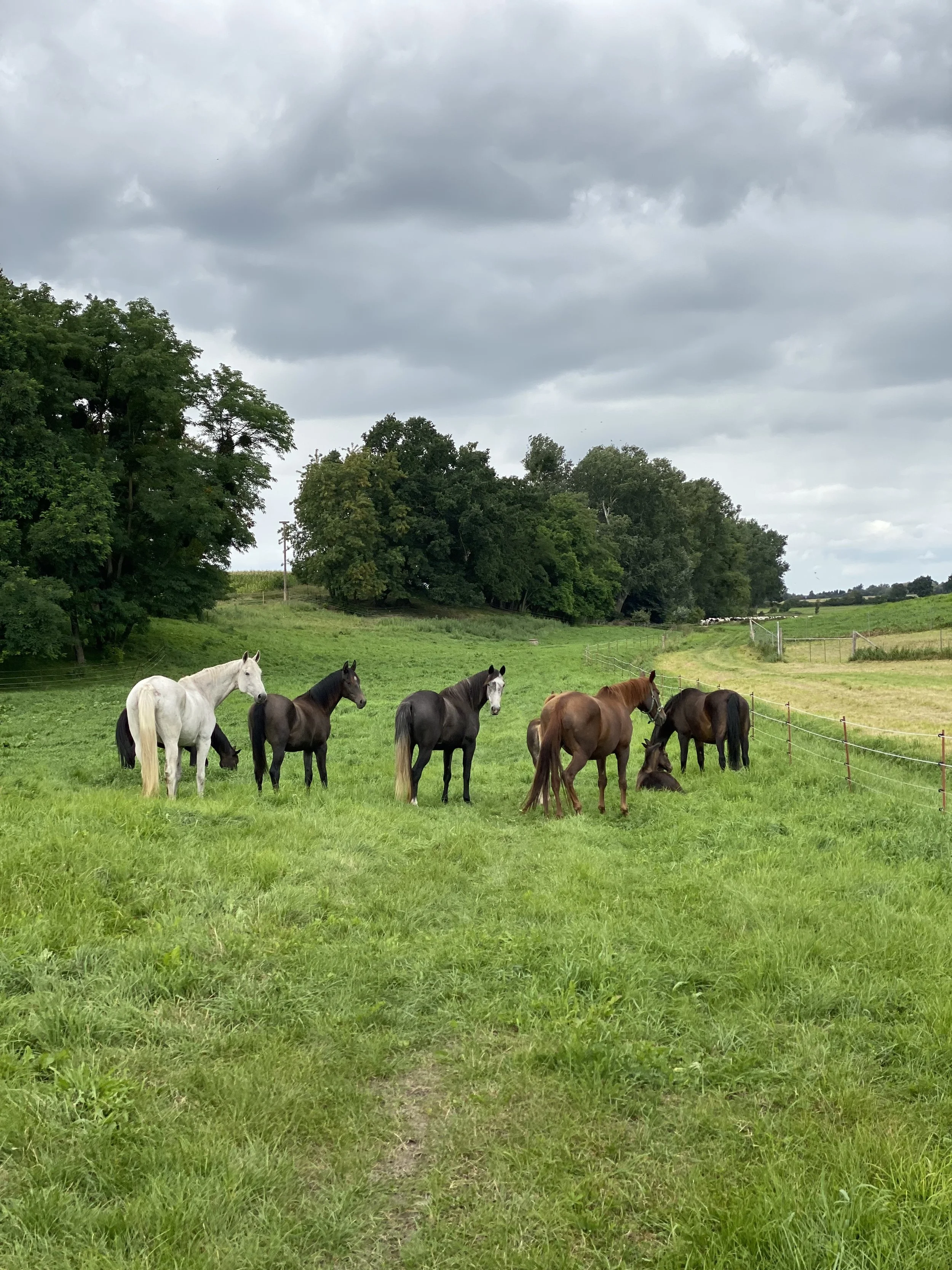 In den folgenden Jahren kamen weitere Stuten hinzu. Heute umfasst unsere Herde acht Pferde – sieben Stuten und ein Junghengst – und bildet die Grundlage für die weitere Zuchtarbeit.
