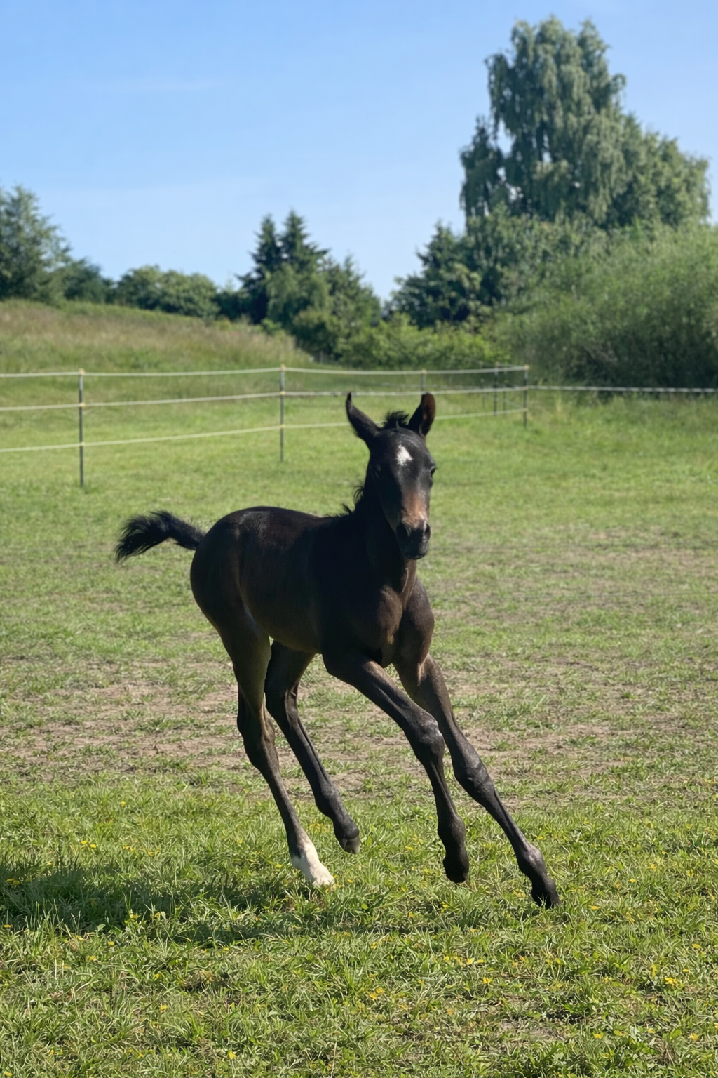 2024 wurde unser erstes Fohlen aus der bereits 21-jährigen Stute Dura geboren. Durch den gezielten Einsatz eines Veredlers haben wir den Blutanschluss erweitert. Unser Fohlen „Dornröschen“ wurde beim Fohlenchampionat in Groß Viegeln als Elitefohlen ausgezeichnet.