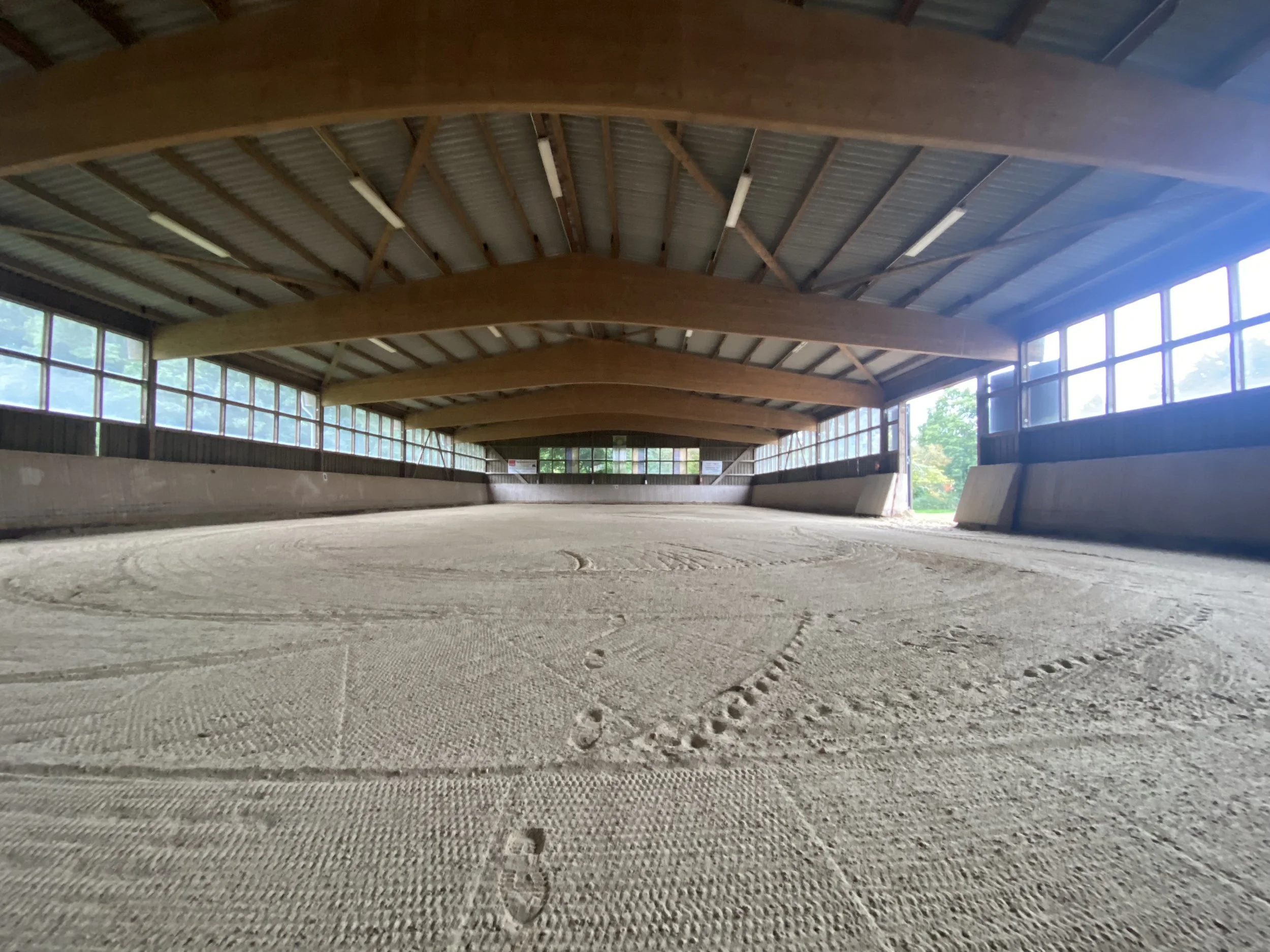 Die Halle wird regelmäßig mit dem Bahnplaner abgezogen und gewässert. Bitte sammelt sorgfältig alle Pferdeäpfel ab, damit wir alle lange Freude an dem neuen Hallenboden haben.